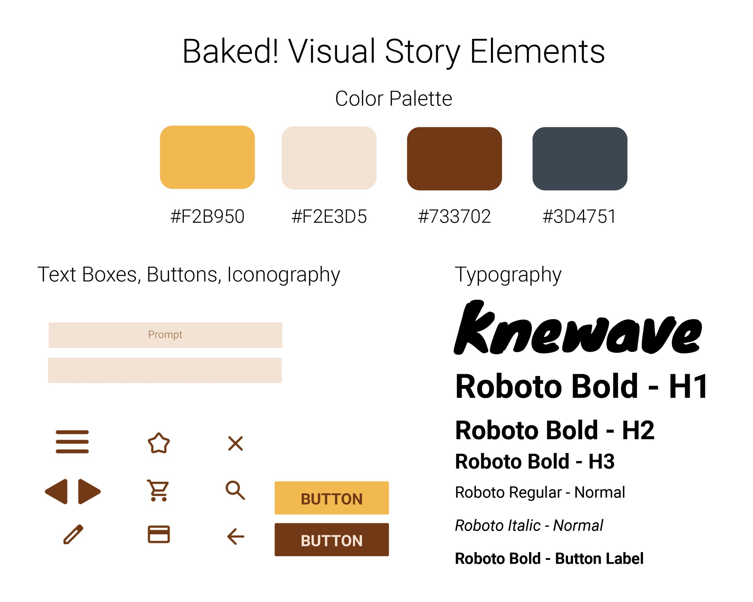 The visual elements of this brand had two aims: vibrancy and simplicity. A yellow monochromatic palette was chosen to emulate the color of happiness and baked goods. The buttons, typography and iconography chosen are simple yet universal and functional.